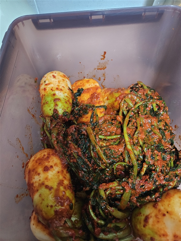 듬성듬성 먹기좋게 잘라서 맛나게 먹었답니다 큼지막한 초롱무를 손으로 들고 먹고싶었지만 ㅎㅎㅎ아이들이 놀랄까봐 참았습니다 라면에도 갓지은밥에도 딱입니당~