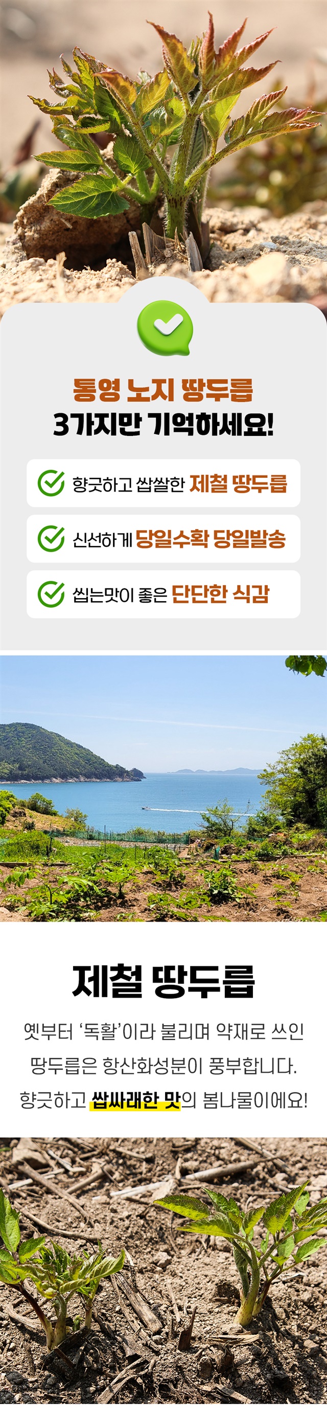 찐한 봄내음 풍기는 노지 땅두릅