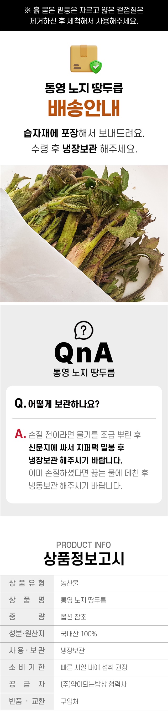 신문지 또는 키친타올로 싸서 밀봉 후 냉장보관