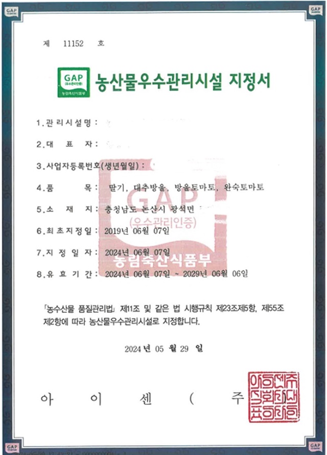 GAP 인증 받은 건강한 농산물이라