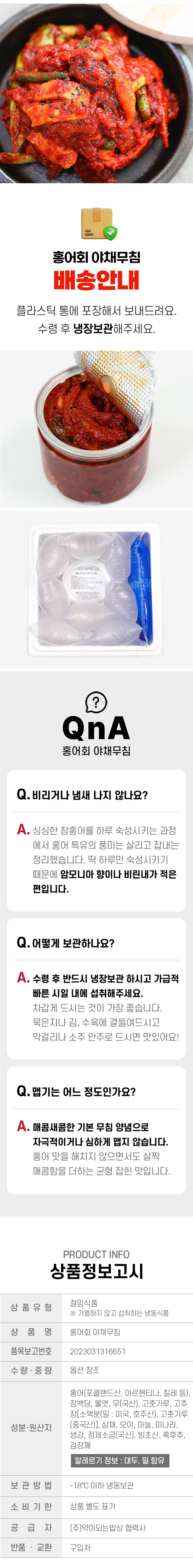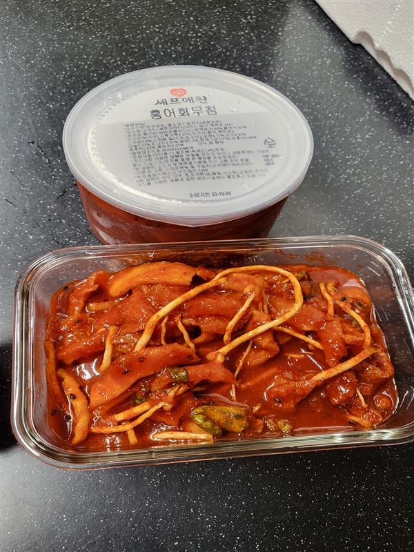 도착하자마자 뚜껑열고 입에 넣었는데 너~무 맛있어요~ 강추합니다. 많이 맵지도 않고 홍어가 진짜 많이 들어있네요. 한동안 홍어무침에 푹 빠질듯요~~